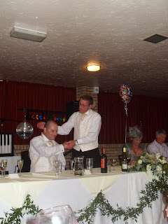 The reception itself was brilliant. A scrumptious 3 course dinner consisting of smoked salmon to start, followed by roast beef with all the trimmings and finishing with the most gorgeous lemon cheesecake - which was all well needed after a few too many G&T's and Pimms and wine and champers..... :-) Dad and Lee (the best man and my older half brother) followed dinner with their speeches, dad's speech set me off into tears galore - again! Something Lee has photographed for my embarrassment, thanks Lee! After that the evening began and was filled with laughter, a little dancing, lots more drinking and yes of course, more tears from an emotional daughter!